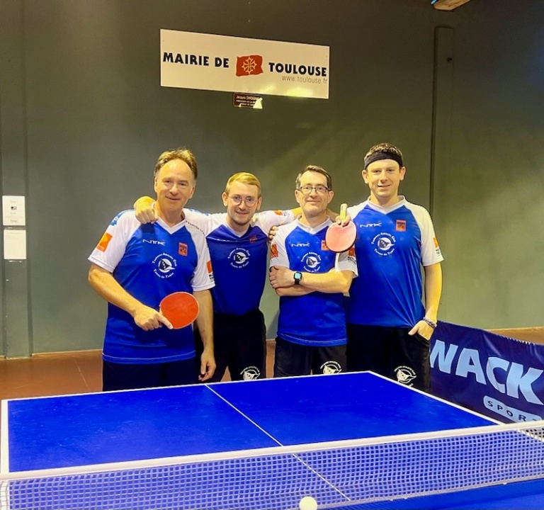 D'entrée des matchs serrés, Stéphane l'emporte 19/17 dans une belle irrespirable contre Frédéric. Benjamin perd ce même Frédéric en 5 sets également. Nous nous accrochons et arrivons aux doubles à égalité 4/4.