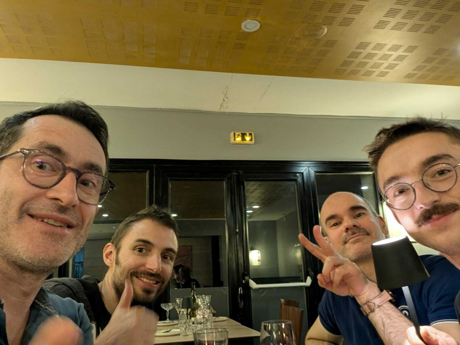 C'est alors que le capitaine (tel Didier Dechamps ou Fabien Galtier) trouva les mots pour donner un élan de courage et de réussite à ses troupes : "On va au resto (avec un remboursement partiel du club) uniquement si l'équipe l'emporte, la règle a changé hier soir !". Rémi l'emporta donc logiquement 3/0 pendant que Mika bataillait jusqu'au 5ème set (qu'il abandonna à son adversaire quand il vit que nous l'avions emporté !)
