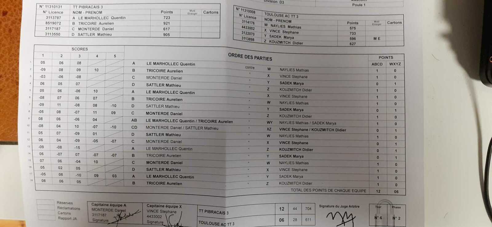 Score final :12-06 pour Pibrac. Ils ont finalement eu raison de se renforcer car on n'a pas démérité et si on avait joué leur équipe type, le résultat aurait pu être inversé.